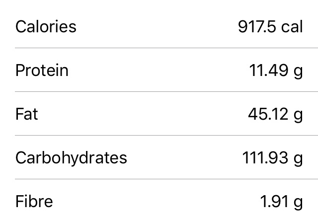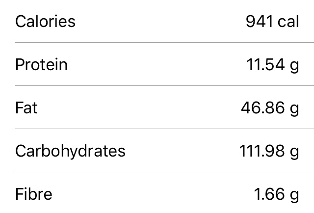 Nutritional values per cake, as you can see it packs quite a calorific punch🤛.