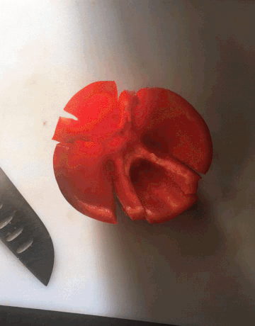 And there you have it, a bell pepper prepped and ready to use, i like to roast them and store them in a jar in the fridge (will post a recipe for this soon).