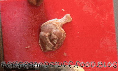 Now to work on the legs, start by taking one leg, if you look at the drumstick you should see some white cartilage that goes round the top of the drumstick in the traditional rounded drumstick shape.