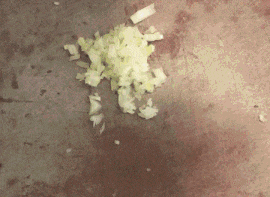 Start by finely dicing an onion.